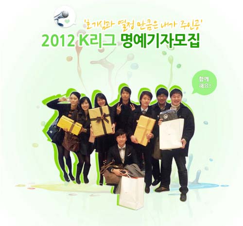 K리그가 오는 12일까지 2012 시즌 새롭게 활동할 'K리그 명예기자'를 모집한다.