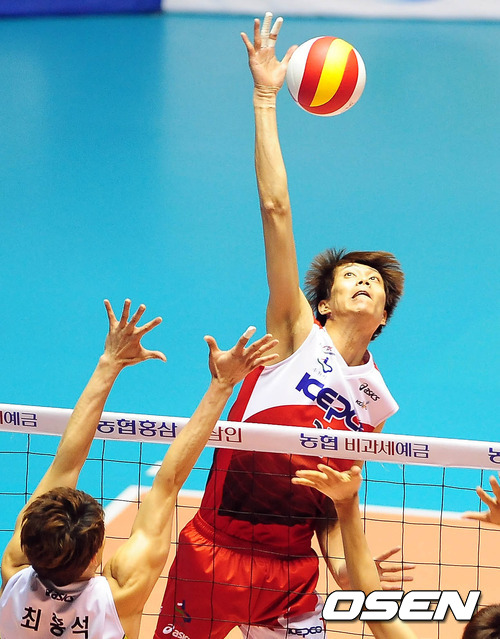 4일 오후 서울 장충체육관에서 열린 '2011-2012 NH농협 V리그' 남자부 드림식스와 KEPCO의 경기 1세트 KEPCO 하경민이 공격을 시도하고 있다.