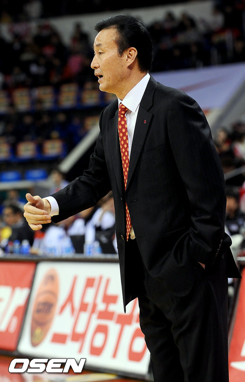 4일 오후 서울 잠실학생체육관서 열린 '2011-2012 KB국민카드 프로농구' 서울 SK와 창원 LG의 경기 1쿼터 LG 김진 감독이 선수들에게 작전 지시를 하고 있다.