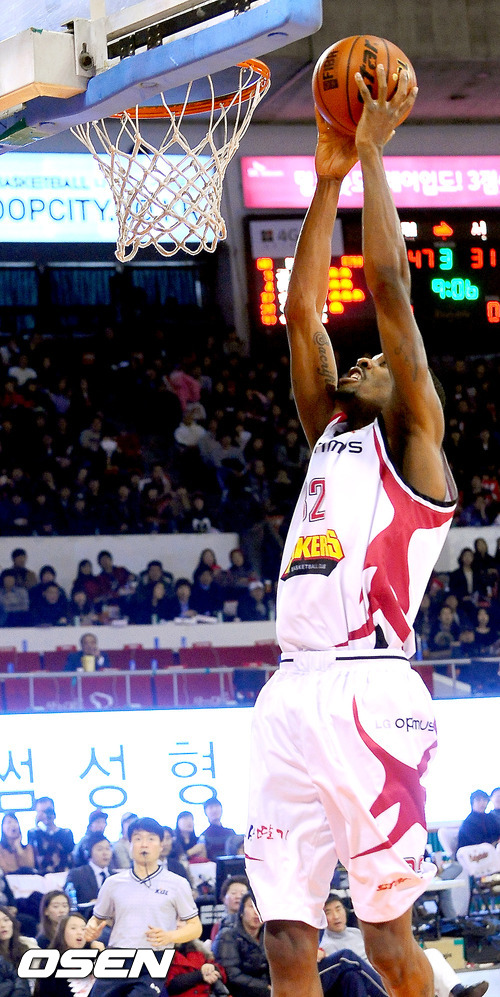 4일 오후 서울 잠실학생체육관서 열린 '2011-2012 KB국민카드 프로농구' 서울 SK와 창원 LG의 경기 3쿼터 LG 헤인즈가 덩크슛을 성공하고 있다.