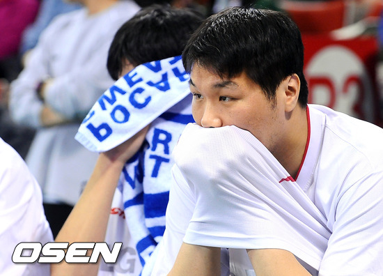 4일 오후 서울 잠실학생체육관서 열린 '2011-2012 KB국민카드 프로농구' 서울 SK와 창원 LG의 경기 4쿼터 LG 서장훈이 벤치를 지키고 있다.