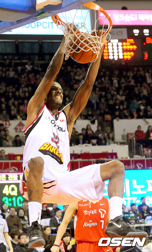 4일 오후 서울 잠실학생체육관서 열린 '2011-2012 KB국민카드 프로농구' 서울 SK와 창원 LG의 경기 4쿼터 LG 헤인즈가 덩크슛을 성공하고 있다.
