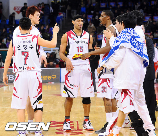 김진 감독이 이끄는 창원 LG는 4일 서울잠실학생체육관에서 열린 2011~2012 프로농구 서울 SK와 경기서 42점을 올린 애론 헤인즈(14리바운드, 4도움, 4블록)의 활약에 힘입어 97-72로 승리했다. 이날 승리로 LG는 6위 모비스를 맹추격하며 6강 플레이오프 진출을 위한 마지막 불꽃을 살렸다.