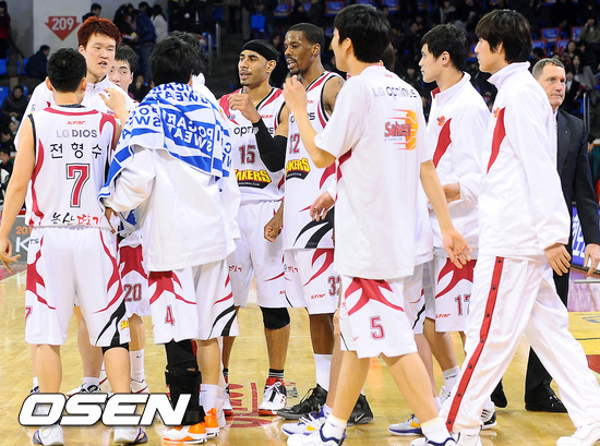 김진 감독이 이끄는 창원 LG는 4일 서울잠실학생체육관에서 열린 2011~2012 프로농구 서울 SK와 경기서 42점을 올린 애론 헤인즈(14리바운드, 4도움, 4블록)의 활약에 힘입어 97-72로 승리했다. 이날 승리로 LG는 6위 모비스를 맹추격하며 6강 플레이오프 진출을 위한 마지막 불꽃을 살렸다.