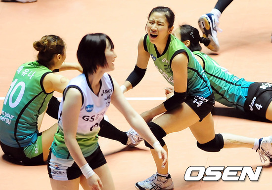 4일 오후 서울 장충체육관에서 열린 '2011-2012 NH농협 V리그' 여자부 GS칼텍스와 현대건설의 경기 1세트 GS칼텍스가 득점에 실패하자 나현정이 아쉬운 표정을 짓고 있다.