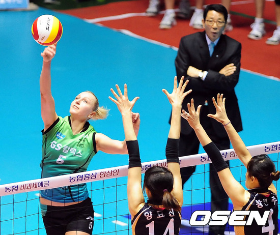 4일 오후 서울 장충체육관에서 열린 '2011-2012 NH농협 V리그' 여자부 GS칼텍스와 현대건설의 경기 2세트 GS칼텍스 로시가 공격을 시도하고 있다.