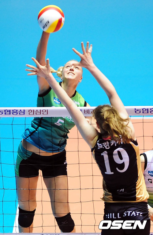 4일 오후 서울 장충체육관에서 열린 '2011-2012 NH농협 V리그' 여자부 GS칼텍스와 현대건설의 경기 2세트 로시가 공격을 시도하고 있다.