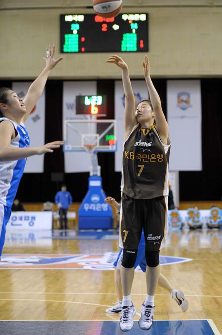 KB는 지난 4일 춘천호반체육관에서 열린 2011-2012 신세계 이마트 여자프로농구 춘천 우리은행과 경기에서 81-56로 대승했다. 경기 시작부터 휘슬이 울릴 때까지 국민은행의 압도적인 우위였다. 강아정(23점, 9리바운드)이 맹활약하며 승리를 이끌었고 정선민(20점)과 변연하(11점 9어시스트)도 승리에 힘을 보탰다.