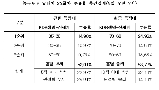 2011-2012시즌 농구토토 W매치 23회차 투표율 중간집계 결과