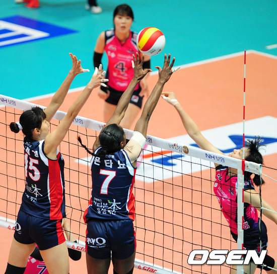 1세트 인삼공사 김세영 몬타뇨가 블로킹에 성공하고 있다. /jpnews@osen.co.kr