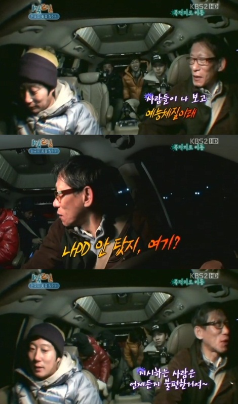 이어 유홍준 교수는 직접 운전하겠다고 나섰다. 운전자석에 앉은 유홍준 교수는 멤버들에게 자랑스럽게 "사람들이 나보고 예능체질이라고 하더라"며 으쓱댔다.