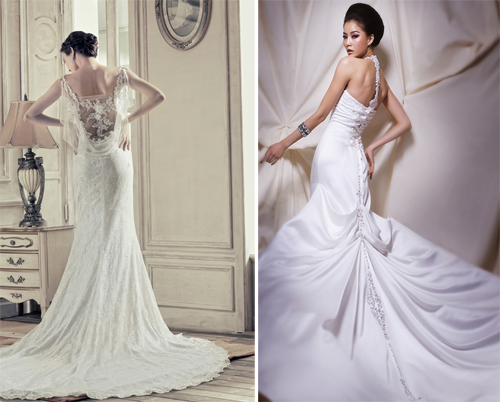 일명 ‘백 오픈 드레스’로 우아함에 섹슈얼함까지 줄 수 있어 매력적이다. 이 드레스는 신부의 경우 베일이 가려주기 때문에 등 부분이 노출된다고 해도 큰 부담 없이 입을 수 있는 장점이 있다.