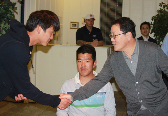 미국 현지시간으로 5일 오후 6시 SK 캠프가 있는 플로리다 베로비치 스포츠 빌리지에 도착한 정 구단주 대행은 이만수 감독에게 격려금을 건네며 선수단의 사기를 북돋웠다.