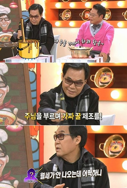 조영남은 "그런데 어머니가 찬송가를 부르면서 가짜꿀을 제조하시더라"라며 "나중에 왜 그러시냐고 물었더니 '세입자가 가짜꿀을 안 팔면 방세가 안나오는데 어떡하느냐'고 하더라"고 일화를 공개해 좌중을 폭소케 했다.