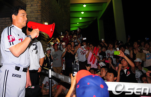 우리 사회가 분노 표출이 많아지고 과격해지고 있으나 프로야구만큼은 화를 내거나 비방만 쏟아붓는 대신 유머스럽고 성숙된 모습을 보이는 팬들이 중심이 돼 모범을 보였으면 좋겠습니다.