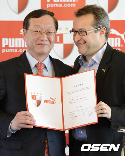 푸마코리아(대표이사 올리비에 로란스)가 K리그 부산 아이파크(대표이사 이광석)와 7일 오전 서울 소공동 롯데호텔에서 스폰서십 조인식을 갖고 다년간 공식 후원계약을 발표했다.