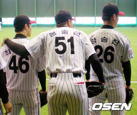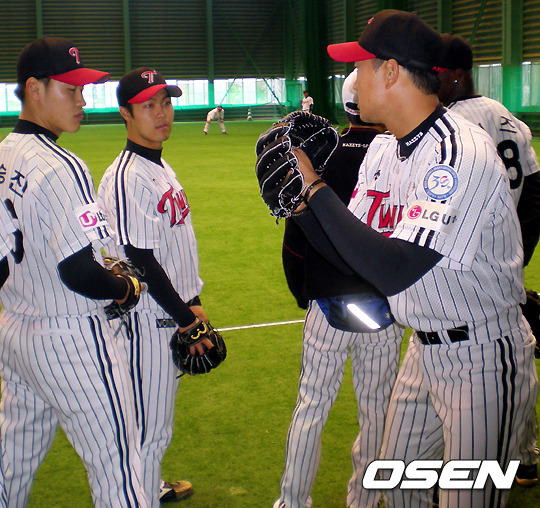 '주자 견제의 달인' 봉중근의 족집게 과외는 인기 만점. 신재웅과 이대환까지 한 수 배우기 위해 봉중근의 견제 교실(?)에 참가했다. 자신의 노하우를 스펀지처럼 빨아 들인 양승진이 민첩한 견제 동작을 선보이자 "좋아 그렇지"라며 환호하기도. 이런 모습이 LG에 부는 긍정의 바람이 아닐까.