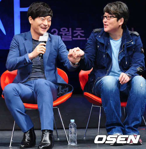 7일 오전 서울 압구정 CGV에서 열린 배우 이선균, 김민희, 조성하 주연의 영화 '화차'(변영주 감독) 제작보고회에서 조성하와 변영주 감독이 손을 맞잡고 있다.