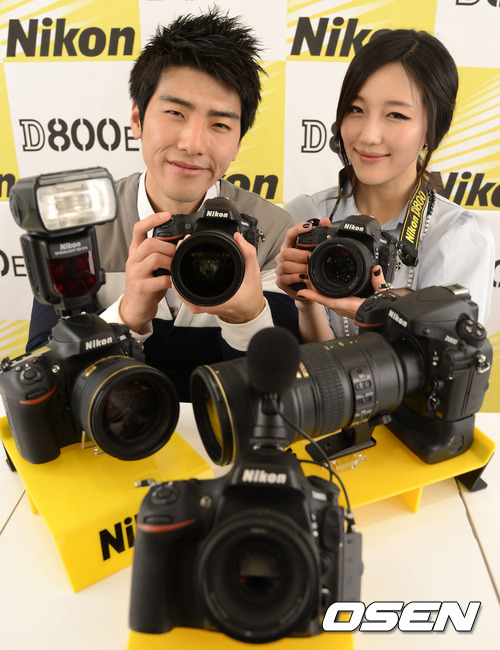 7일 오후 서울 프레스센터에서 니콘이미징코리아 D800 발표회에서 도우미들이 카메라를 선보이고 있다.