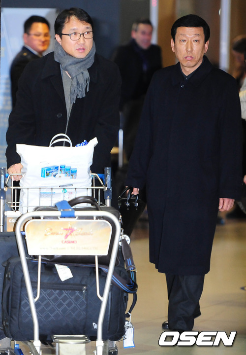 7일 오후 최강희 국가대표팀 감독과 황보관 기술위원장이 인천국제공항 입국장을 빠져나오고 있다.