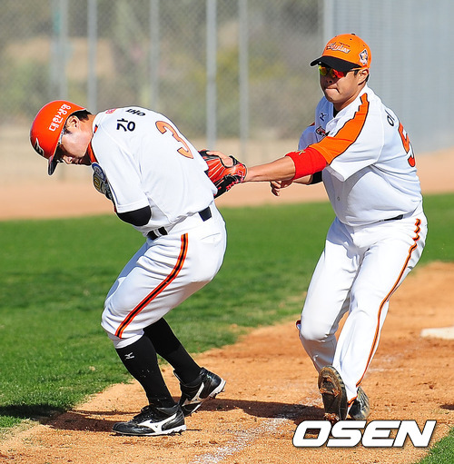 백팀에서는 타격폼을 수정한 김경언이 2루타 포함 2타수 2안타 1볼넷으로 활약했다. 4번타자 최진행은 1안타를 쳤는데 중견수 키를 넘어가는 3루타로 장타력과 한층 가벼워진 발놀림을 과시했다. 유력한 주전 3루수 후보 이여상은 3타수 무안타에 그쳤다.