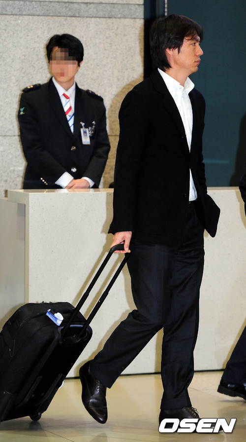 7일 오후 '2012 런던 올림픽 아시아지역 최종예선' A조 사우디아라비아와의 4차전을 마치고 돌아온 올림픽대표팀 홍명보 감독이 인천국제공항 입국장을 빠져나오고 있다.