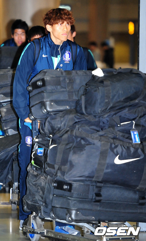 7일 오후 '2012 런던 올림픽 아시아지역 최종예선' A조 사우디아라비아와의 4차전을 마치고 돌아온 올림픽대표팀 김승규가 인천국제공항 입국장을 빠져나오고 있다.