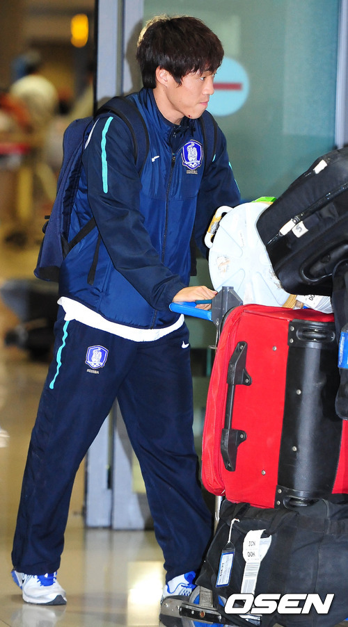 7일 오후 '2012 런던 올림픽 아시아지역 최종예선' A조 사우디아라비아와의 4차전을 마치고 돌아온 올림픽대표팀 서정진이 인천국제공항 입국장을 빠져나오고 있다.