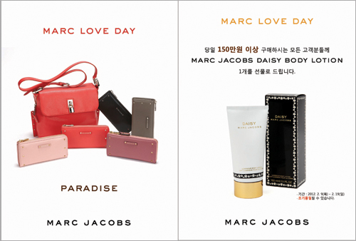 먼저 ‘마크 제이콥스’는 특별한 사은품을 선사한다. 오는 9일부터 19일까지 당일 150만 원 이상 구매하는 소비자에게 국내에서 처음 선보이는 ‘마크 제이콥스 데이지 바디로션(150ml)’을 증정한다.