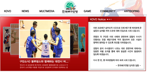 [OSEN=김희선 인턴기자] 한국배구연맹(KOVO)이 공식 홈페이지를 통해 프로배구 승부조작 사건 관련 사과문을 게재했다.