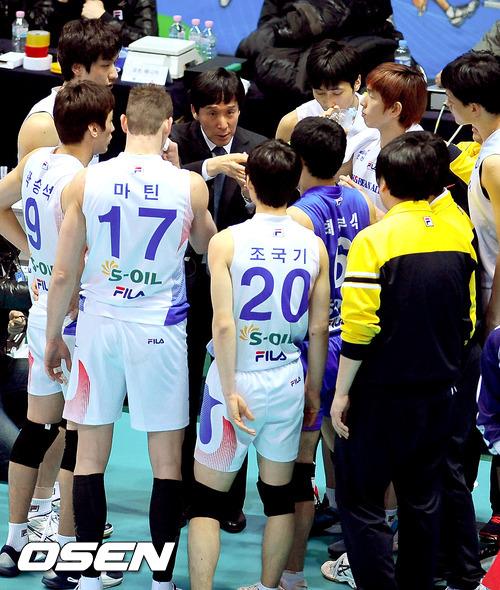 9일 오후 인천 도원체육관에서 열린 '2011~2012시즌 NH 농협 V리그' 남자부 인천 대한항공과 천안 현대캐피탈 경기 2세트 현대캐피탈 신영철 감독이 작전 지시를 하고 있다