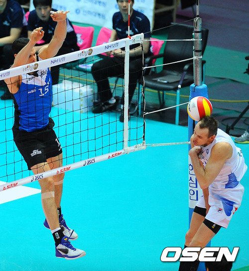 1세트 현대캐피탈 수니아스가 대한항공 마틴의 강타를 블로킹하고 있다./ soul1014@osen.co.kr