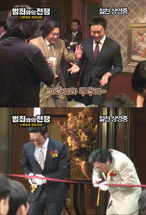 영화 '범죄와의 전쟁 : 나쁜놈들 전성시대'(이하 '범죄와의 전쟁')가 주인공 최민식, 하정우의 훈훈한 촬영장 분위기를 엿볼 수 있는 영상을 공개했다.