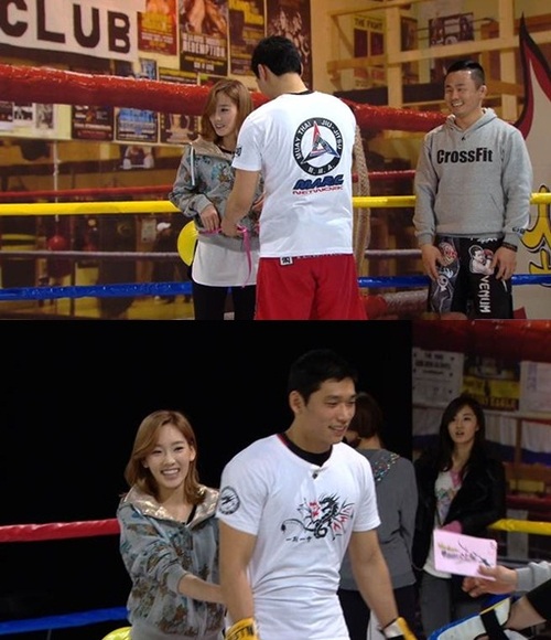 이날 '소녀시대와 위험한 소션들'은 소년들에게 '제대로 주먹 쓰는 법'을 알려주기 위해 이종격투기 선수 서두원을 초대해 링 위에서 녹화를 진행했다.