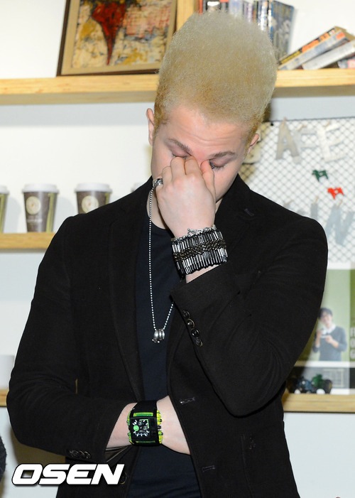 10일 오후 서울 강남구 역삼동의 한 카페에서 열린 ‘슈퍼스타K 3’ 출신 크리스 고라이트리 주최 기자회견에서 크리스가 괴로워하고 있다.