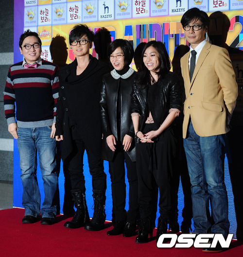 생방송에 앞서 윤일상 이승환 이선희 박정현 윤상이 포토타임을 하고 있다.