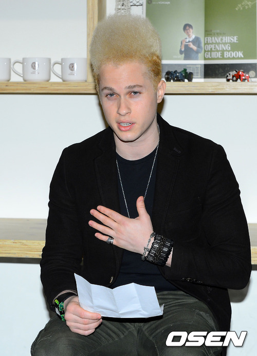 10일 오후 서울 강남구 역삼동의 한 카페에서 열린 ‘슈퍼스타K 3’ 출신 크리스 고라이트리 주최 기자회견에서 크리스가 적어온 종이를 읽고 있다.