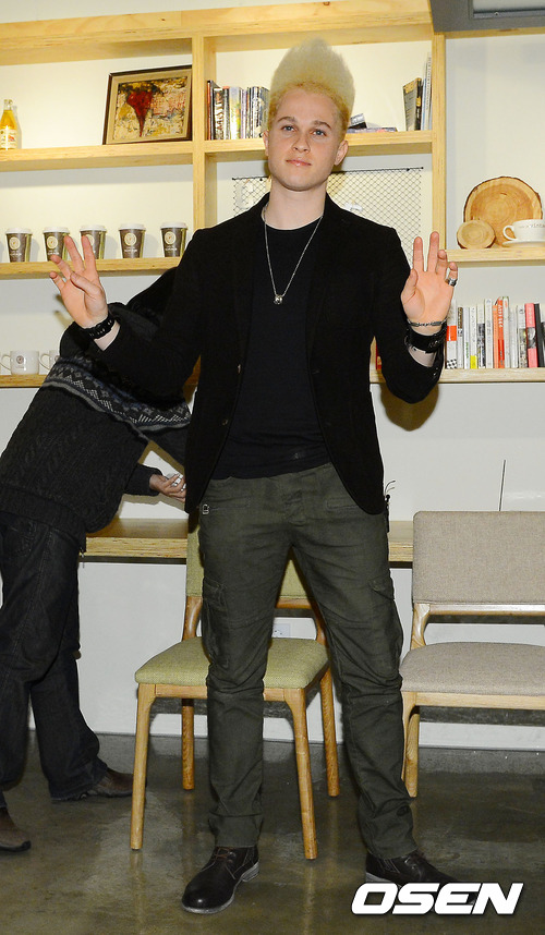 10일 오후 서울 강남구 역삼동의 한 카페에서 열린 ‘슈퍼스타K 3’ 출신 크리스 고라이트리 주최 기자회견에서 크리스가 손인사를 하고 있다.