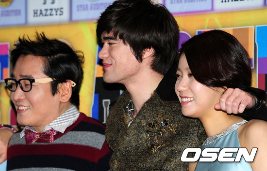 생방송에 앞서 윤일상 샘카터 정서경이 포토타임을 하고 있다