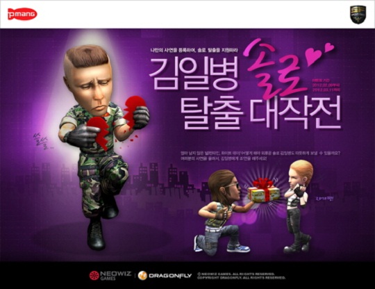 대한민국 대표 FPS게임 '스페셜포스'는 밸런타인데이를 맞이해 솔로 구제하는 이색 이벤트를 실시한다. 2월 9일부터 3월 11일까지 진행되는 이 이벤트는 매주 각기 다른 테마로 연애 멘토들의 솔로 탈출 비법을 전수한다. 주제별로 이용자들이 등록한 진솔한 이야기 중 베스트를 선정해, 인기 총기 아이템 ‘큐티 M4A1’과 아이패드2, 백화점 상품권, 외식 상품권 등 푸짐한 선물을 제공한다.