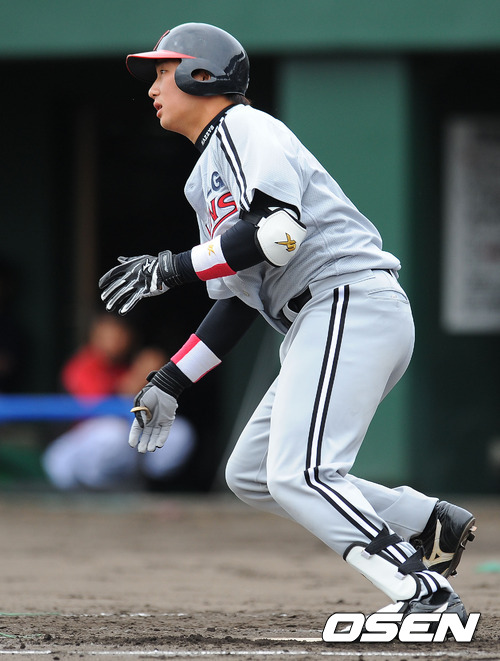 11일 일본 오키나와 차탄 구장에서 열린 LG 트윈스와 주니치 드래건스의 경기,2회초 2사 1,3루 LG 나성용이 1타점 적시타를 치고 타구를 바라보고 있다.