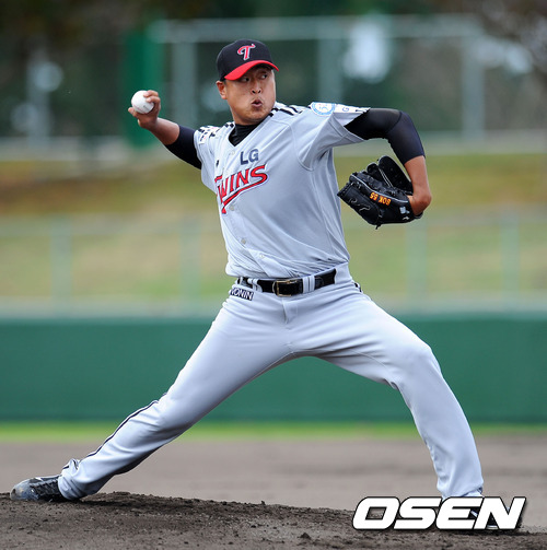 LG 트윈스 투수 정재복(31)이 11일 차탄구장에서 열린 주니치 드래건스와의 연습 경기에서 인상적인 투구를 선보이며 올 시즌 부활을 예고했다.