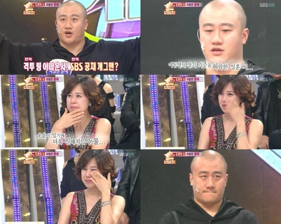 특히 이날 방송에서 박미선은 개그킹에 참여한 전직 격투기 링 아나운서이자 SBS 공채 개그맨 출신인 성훈 씨의 안타까운 사연에 "개그맨 후배들이 웃길 수 있는 무대가 많아졌으면 좋겠다"고 울먹였다.