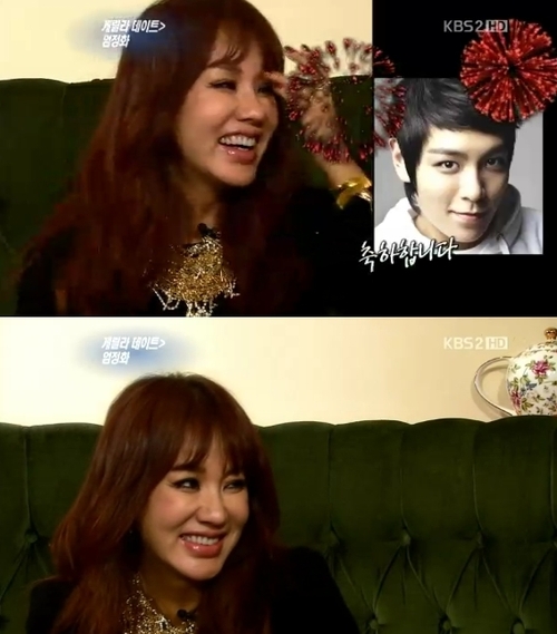 11일 오후 방송된 KBS 2TV ‘연예가중계’에서 엄정화는 이상형 월드컵에서 다니엘 헤니 대신 탑을 선택했다. 엄정화는 “탑은 정말 열심히 하고 의리가 있다”면서 “때마다 전화로 인사를 하는 친구다”고 탑에 대해 아낌없는 칭찬을 했다.