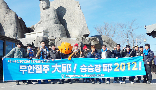 대구FC 마스코트 '빅토'가 지난 11일 오전 팔공산 갓바위 산행으로 팬들과의 약속을 지켰다. 이날 '빅토'는 10여 명의 팬들과 함께 팔공산 갓바위를 올라 8강 진입을 기원하는 등 이색 이벤트를 실시했다.