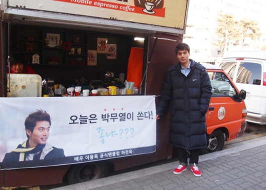이동욱이 도시락 선물은 물론 이동식 커피차까지 등장시킨 팬들의 큰 사랑에 함박웃음을 지었다.
