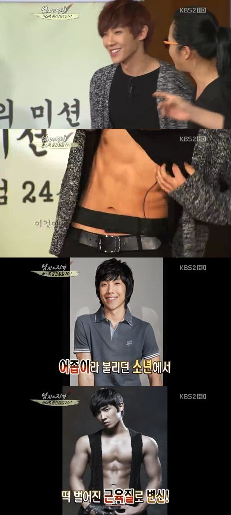 12일 방송된 KBS 2TV '해피선데이-남자의 자격'(이하 남격) '남자, 그리고 식스팩 중간점검'에서는 식스팩 미션을 시작한지 한달 째를 맞아 멤버들이 중간점검을 통해 얼만큼 변화했는지 짚어보는 시간을 가졌다.