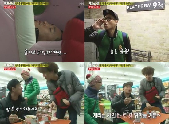 이날 '런닝맨' 멤버들은 개리의 귀국과 동시에 개리의 유럽 여행 기억으로 이뤄진 미션을 수행했다. 팔팔한 멤버들과는 달리 일주일간 여행을 다녀온 개리에게는 고역이었다.