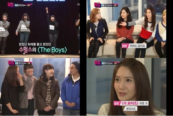 수펄스 멤버들은 소녀시대 앞에서 즉석으로 '더 보이즈'를 열창했고 이 모습을 소녀시대 멤버들은 흐뭇하게 바라봤다.