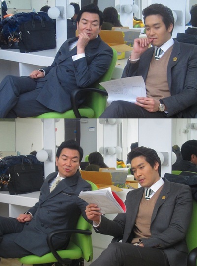 SBS 월화극 '샐러리맨 초한지'의 두 본부장 정겨운과 김일우가 똑같은 포즈로 대본 연습에 몰두한 장면이 포착됐다.